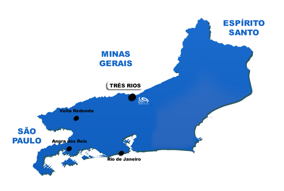 Nossa sede está estrategicamente localizada em Três Rios (RJ) e possui uma área construída de 2.250 m². Beneficia-se de fácil acesso a três das maiores cidades do país: Rio de Janeiro, São Paulo e Belo Horizonte.